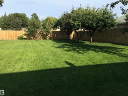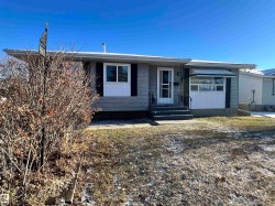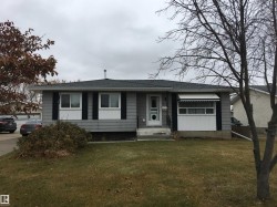 MOVE IN READY! This well-kept BUNGALOW offers over 2000 sq ft of living space! The main floor features a living room with a picture window overlooking the front yard, a large dine-in kitchen, three bedrooms upstairs with a two piece ensuite off the primary bedroom and a four piece bathroom serving the other two bedrooms. Downstairs is a FULLY FINISHED BASEMENT with a SEPARATE ENTRANCE from the backyard, offering a fourth bedroom, large family room, and three piece bath. The HUGE YARD gives room to expand, and backs onto a decommissioned rail line for privacy! Located steps from the Champlain Park community garden and Lion's Park, come see this cozy part of Morinville and make this home your own!