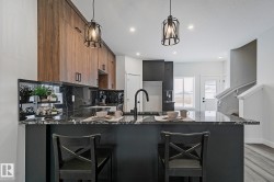 BRAND NEW Single-Family Home w/Legal Suite! Total 4 bed, 3.5 bath. Ideally located just 10 minutes to St. Albert & minutes from schools, parks, & grocery stores, this stunning custom-designed home truly has it all. From the moment you enter, a large front window floods the space w/natural light, highlighting the elegant living RM featuring a striking accent wall, beautifully detailed ceiling, & a stylish fireplace. The spacious dining area comfortably accommodates large family gatherings, while the corner L-shaped kitchen impresses w/floor-to-ceiling cabinetry, quartz countertops, & a generous island. The main floor is complete with a convenient laundry room, powder room, & a separate side entrance leading to a 1-bedroom, 1-bath legal basement suite, ideal for rental income or extended family. Upstairs, you’ll find a versatile office space, a spacious primary retreat, a large W/I closet w/built-in drawers, & a full ensuite bath. Two additional Bedrooms with a 2nd full bath. *Photos are of a similar home*