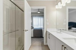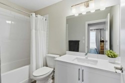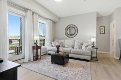 Welcome to #1107, 100 Banister Dr at the beautiful Lawrie Park Condos. This brand new Ava model condo offers the perfect blend of style, functionality, and location. Featuring 2 bedrooms, 2 bathrooms, and over 840 sq ft of thoughtfully designed living space, this home is ideal for anyone seeking comfort, convenience, and modern living. Only 15 minutes south of Calgary in one of Okotoks newest communities, this location has it all. Step inside to discover a bright open-concept layout with luxury vinyl plank throughout the unit, beautiful shaker-style cabinets, extra pull-out drawers in the kitchen, quartz counter tops and a seamless flow between the living, dining, and kitchen areas. The primary suite includes a spacious walk-in shower and a custom linen closet for added storage and organization. What truly sets this unit apart is its massive walkout patio — the largest in the entire complex (34 feet)! Other units in the complex have walkouts as well, but none as big and spacious as this one! Enjoy direct street access, making it easy for guests or pet owners to come and go. A phantom screen door and patio gate add extra comfort and convenience. This pet-friendly building also boasts low condo fees, offering exceptional value and peace of mind. Additional features include underground parking, a separate storage locker, and ample street parking right out front. The location can’t be beat — just steps from basketball courts, community garden plots, playground, bike park, a nearby shopping centre, golf courses, enclosed dog park, and a scenic pond with walking paths. Whether you’re looking to enjoy nature, stay active, or explore local amenities, everything you need is right at your doorstep. Move-in ready and loaded with upgrades, this beautiful condo combines modern finishes with unbeatable functionality. Don’t miss your opportunity to call this brand-new home your own — book your showing today!