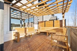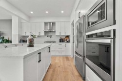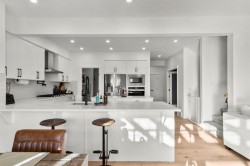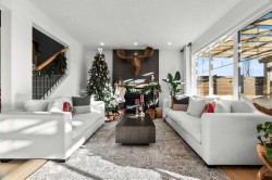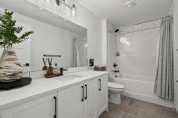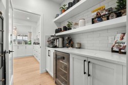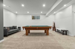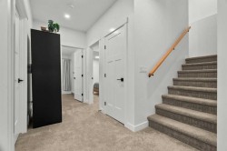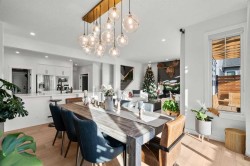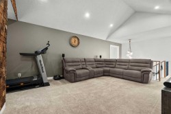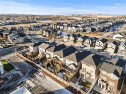 Situated in the sought-after Air Ranch community, this beautiful 2022-built home blends craftsmanship, thoughtful design, and modern comfort across nearly 3,900 square feet of living space. With five bedrooms, including four upstairs, and a main floor office, this residence offers a rare combination of space, flexibility, and function for a busy household. The exterior stands out right away with architectural stone, premium siding, and sleek black triple-pane windows that balance style and energy efficiency. Inside, natural light fills the open-concept main floor while wide-plank hardwood flows throughout. Every finish feels cohesive and deliberate, creating a space that is both welcoming and refined. The kitchen is the centerpiece of the home, designed with quartz countertops, full-height cabinetry, a gas range with pot filler, and a walk-through butler’s pantry complete with a coffee bar. Just off the kitchen, a private office provides a quiet spot for work or study. The living room is warm and comfortable, highlighted by a shiplap fireplace with a solid wood mantel. Large patio doors open to a spacious deck and pergola overlooking a beautifully landscaped, low-maintenance, south-facing backyard, ideal for year-round relaxation or entertaining. Upstairs, four generous bedrooms provide a layout rarely found in homes like this. The vaulted bonus room separates the primary suite from the secondary bedrooms, offering both connection and privacy. The primary bedroom is a true retreat with a spa-inspired ensuite featuring dual sinks, a deep soaker tub, glass-enclosed shower, and private water closet. The ensuite connects directly to a large walk-in closet with convenient access to the upper laundry room. A full bathroom completes the upper level. The finished basement adds even more living space, with nine-foot ceilings, a large recreation area, and an exceptionally spacious fifth bedroom perfect for guests or extended family. A full four-piece bathroom and a clean, well-organized mechanical room reflect the same care that runs throughout the home. Located close to Okotoks’ newest boutique plaza, which will soon feature a café, day care, and other local amenities, this property offers an ideal blend of luxury, lifestyle, and everyday convenience. Every detail, from triple-pane windows to motorized roller shades, was chosen for both comfort and longevity. This home truly stands out for its quality, family-friendly design, and timeless appeal.