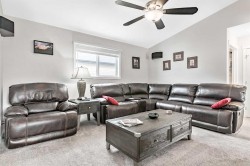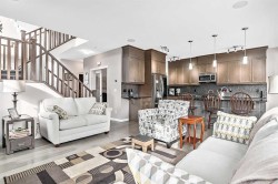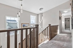 Wow! This immaculate, air-conditioned home with a triple garage is loaded with impressive upgrades inside and out. Offering over 3,100 sq. ft. of developed living space, this beautifully maintained 4-bedroom, 4-bathroom home is designed to pamper you and your family .Oversized south-facing windows flood the home with natural light, creating a warm and inviting atmosphere throughout. The terrific floorplan begins with a functional foyer and mudroom, perfect for everyday organization. The bright, open great room features soaring ceilings and seamlessly connects to the stunning kitchen, complete with granite countertops, upscale stainless steel appliances, and a convenient walkthrough pantry — ideal for both family living and entertaining. Upstairs, you’ll find three spacious bedrooms, a versatile bonus room, and a conveniently located laundry area. The primary suite is a wonderful retreat, featuring a luxurious ensuite designed for comfort and relaxation. The professionally developed basement expands your living space with a fourth bedroom, a spacious bathroom featuring heated floors, a steam shower, and a private sauna. Enjoy entertaining at the custom wet bar, highlighted by a charming potbelly gas stove, plus a huge storage room to keep everything organized. Outside, the upgraded outdoor space truly shines. Situated on a corner lot with vinyl fencing, this property offers a large stamped concrete patio, glass rail deck, hot tub, gravel dog run, irrigation system, and storage shed — creating the perfect setting for relaxing or hosting. This is truly a terrific home that blends space, style, and thoughtful upgrades throughout.