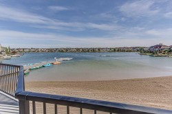 Welcome to this lovely End unit Townhome in the popular lake community of Crystal Shores. Just a short walk to the beach, schools and Okotoks pathway system making it a perfect location! As you step into the home you will appreciate the spacious entrance. On the next level is a huge living room with high ceilings and a corner gas fireplace - a perfect place to relax after a long day! From this level you can step out onto the east facing deck for your morning coffee and enjoy the sunrise. On the next level is a great kitchen with maple cabinets, white appliances, a central island and plenty of counterspace. Enjoy family mealtimes in the large dining space with its west facing windows. Completing this level is a half bath and a laundry. Upstairs is a great den/bonus room (or potentially bedroom #3 if required) and 2 good sized bedrooms. The master bedroom features a 4 piece ensuite and a walk in closet. There is also an additional 4 piece bathroom on this level for your convenience. The fully finished basement makes a great family room (or an additional bedroom if required) and there is additional storage on this level too. There is a new hot water tank and did I mention the attached single car garage? Come and enjoy all the fabulous lake amenities when you own this great townhouse.