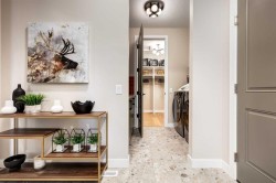 This stunning, newly built bungalow in the prestigious community of Cimarron Estates will be ready for possession in April 2026! Situated on a 17,000 sqft walkout lot with views to greenspace and no neighbour behind, this is truly a rare opportunity. As the last newly built home in Cimarron Estates, don’t miss your chance to secure this one-of-a-kind property. With nearly 3,000 sqft of developed living space, this fully finished home blends luxury and comfort. The main level spans 1,740 sqft, featuring an expansive open-concept living area with vaulted ceilings in the kitchen, dining room, and great room, creating an airy, inviting atmosphere. A wall of rear windows fills the space with natural light, while beautiful hardwood flooring flows throughout. At the heart of the home is a gourmet kitchen with a walk-in pantry, full-height cabinetry, a large island with a beverage cooler, and premium stainless-steel appliances, including a gas cooktop, range hood, wall oven, microwave, and French-door fridge. The kitchen seamlessly connects to the dining area with access to the full-width deck overlooking the backyard & greenspace, as well as the great room, highlighted by a striking floor-to-ceiling tiled fireplace. The primary retreat features a spa-inspired ensuite with dual sinks, a full-tile walk-in shower, a soaker tub, and a large walk-in closet with direct access to the laundry room for added convenience. Completing the main floor are a mudroom off the garage, a 2-piece powder room, and a versatile den/flex room. The fully finished walkout basement adds 1,153 sq. ft. of living space, including two generously sized bedrooms, a full bathroom with dual sinks, and a massive storage/mechanical room. A bright, open rec room with an electric fireplace and a dedicated games area framed by large windows makes the lower level both functional and inviting. From here, walk out to a spacious covered patio and the expansive yard. Other highlights include a side-drive triple-car garage, 8-foot interior doors, premium finishes, and a thoughtful layout designed for modern living. Don’t miss this opportunity to own the final newly built home in Cimarron Estates—a home that offers space, privacy, and luxury in one of Okotoks’ most sought-after communities. **Note: Photos are from a previous show home and may not be an exact representation of the property. Interior selections are at the end of the photos (Images 30-36).
