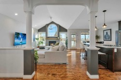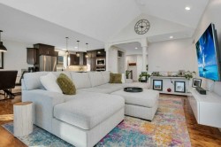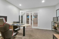 RARE FIND!! Welcome to this bright and beautifully updated open concept bungalow, perfectly positioned backing onto a highly desirable GREEN SPACE! With 2 bedrooms on the main level, 2 bedrooms downstairs plus office, and 3 full bathrooms, this home offers a flexible and functional layout ideal for families, guests, and home office needs. Large windows take full advantage of the south-facing fully landscaped backyard and floods the home with natural light plus provides lovely year-round views. Relax and enjoy evening BBQ'S on the 2 tiered composite covered deck with glass railing. Beyond the fence, enjoy direct access to a large green space featuring an elementary school and ball diamond in the summer, which transforms into an outdoor skating rink in the winter—a true community gem. Despite the proximity to the school, the home remains quiet and peaceful. Inside, you’ll appreciate the site finished hardwood floors on the main level and a refreshed kitchen that anchors the open living space—perfect for everyday living and entertaining. Stone counter tops add an elegant touch to the kitchen, appliances have all been replaced within the past few years, and there is a large center island, a perfect space for the family to gather. The main bedroom at the rear of the home is a quiet and private oasis and comes complete with a beautiful 5pce ensuite and walk-in closet! Thoughtfully updated finishing touches throughout this home create a warm and welcoming atmosphere that is completely move-in ready. A double attached heated garage with epoxy flooring takes care of parking, and there is a concrete hot tub pad and wiring in the fully landscaped backyard as well as decorative curbing. Combining location, light, and lifestyle, this exceptional bungalow is a rare opportunity to enjoy comfort, convenience, and community all in one.