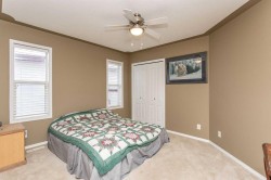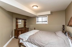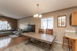 This well-kept bi-level offers a practical layout and comfortable living space in a convenient location. Built in 2002, the home features vinyl windows, asphalt shingles, and vinyl siding for low-maintenance ownership. The main floor offers an open design with a relatively spacious living room highlighted by a large front window, flowing into the dining area off the kitchen. The kitchen is functional and bright with linoleum flooring, light oak cabinets, laminate counters, a pantry, and a modern deep stainless steel sink. Three bedrooms are located on the main level, all finished with carpet and standard closets, with the primary bedroom offering a slightly larger footprint and closet. A 4-piece main bathroom includes linoleum flooring, an oak vanity, and a white tub/shower surround. The fully developed basement adds valuable living space, featuring a large family room with carpet flooring and pot lighting throughout. The basement bedroom is generously sized with a larger closet, and a second 4-piece bathroom offers a tiled tub surround and a more modern vanity. Outside, the home sits on a large pie-shaped lot with a wood deck overlooking a fenced, grassed yard. The rear gravel parking pad provides ample off-street parking and offers excellent potential for a large future detached garage or shop. Located just around the corner from a small playground, steps to a larger park, close to Holy Family Elementary and Deer Park Shopping Centre, and backing directly onto a walking trail, this home offers a great balance of space, location, and everyday functionality.