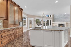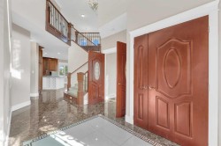 Welcome to 3 Trump Place—an exceptional, fully developed executive home located in one of Red Deer’s most desirable, private closes. This 4-bedroom plus den, 3.5-bathroom residence is the perfect blend of timeless elegance and modern design, offering superior craftsmanship and luxurious details throughout. From the moment you arrive, the curb appeal is undeniable. The grand double iron doors open into a dramatic two-storey foyer adorned with granite flooring and an abundance of natural light. The attention to detail is immediately evident in the custom finishings, upscale materials, and thoughtful layout designed for both family living and entertaining. The chef-inspired kitchen is as functional as it is beautiful, featuring rich cherry wood cabinetry, granite countertops, high-end appliances, and a large island with eating bar. A walk-in pantry, full tile backsplash, and undermount sink elevate the space. The adjoining dining area offers access to the covered deck and beautifully landscaped backyard, perfect for outdoor gatherings. The open-concept great room is anchored by a floor-to-ceiling stone fireplace flanked with custom maple shelving, creating a warm and inviting atmosphere. A private main-floor office with French doors, a convenient 2-piece powder room, and a spacious laundry room with built-in cabinetry and a sink complete the main level. Upstairs, the spacious bonus room overlooks the main living area, while the serene primary suite offers vaulted ceilings, large windows, a walk-in closet with built-ins, and a spa-like ensuite featuring a soaker tub, oversized tiled shower, double vanity, and separate water closet. Two additional bedrooms and a beautifully appointed full bathroom are also located on the upper level. The fully finished basement features in-floor heat, granite tile flooring, 9-foot ceilings, a large family room with wet bar, fourth bedroom, a separate den, and a full bathroom. This level adds both comfort and flexibility to suit your family's needs. Additional highlights include air conditioning, built-in sound wiring and high speed cat 5 wiring for high speed gaming etc., solid wood doors, premium light fixtures including chandeliers, and a heated, finished double garage. The backyard is fully fenced with vinyl, offers back-alley access, and includes a firepit area and storage shed. Ideally situated within walking distance to schools, playgrounds, parks, churchs, and all the amenities of both Timberlands and Clearview Market Square, this property combines the best of location, luxury, and lifestyle. Homes of this calibre and setting rarely come to market—experience the quality and attention to detail for yourself at 3 Trump Place.