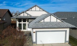 Here's a Wonderful Family Home located in the Creekside subdivision in the south end of Rocky Mtn. House. So many fantastic features including a large, bright entryway, tray ceiling in the living room, back porch, large master bedroom with a walk in closet and spacious 3 piece ensuite, second bedroom plus a den and full bathroom with a jetted tub on the main floor. The lower level features a nice big rec room complete with a big screen tv, bar area, wine and bar fridge, two additional bedrooms and a large bathroom with a claw foot tub. A truly custom feature is the oversized display room attached to one of the lower level bedrooms with loads of shelving - perfect for the collector or crafty person in the family. There's a large back deck and storage shed and as an added bonus the community park is just steps behind the property. The stove and microwave are brand new and the carpets and windows have just been professionally cleaned. Available for immediate possession.