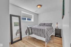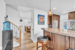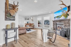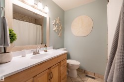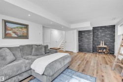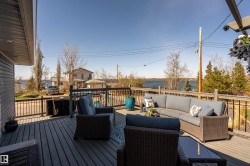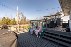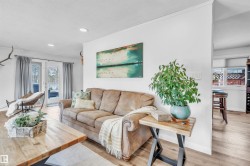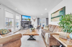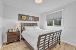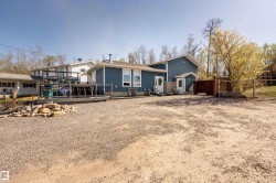 Professionally renovated split level retreat nestled in a peaceful cul-de-sac at Bonnyville Beach, just steps from Moose Lake. This 1323 square foot stunner boasts gleaming new luxury vinyl plank flooring throughout and clever climate control—a stylish stone-faced wood burning stove for those crisp winter evenings and refreshing air conditioning for sun-soaked summer days. The showstopping kitchen features elegant quartz countertops and sleek stainless steel appliances, including a brand-new gas range that would make any home chef smile. With four inviting bedrooms and three bathrooms, there's room for everyone to unwind in style. Outside, the fully landscaped backyard offers privacy behind a preserved 6-foot fence, while the expansive two-tiered front deck provides the perfect perch for savouring those tranquil lake views with your morning coffee or evening cocktail.