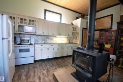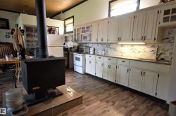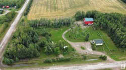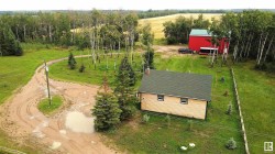 Let Nature Surround You! Two acreages for the price of one! Over 3 acres combined located just 1 1/2 miles from Manatokan Lake. Own a piece of history with this 1940s school converted to a year round home. Completely renovated throughout! This open concept living space includes solid wood kitchen cabinets, cozy wood stove, laminate flooring and laundry hookups. Raised living room has gas stove and large windows. 3 pc bath offers an oversized stand up shower. 40' X 50', 2013 shop is heated and includes a 16' overhead door, concrete floor, water/sewer, separate approach and driveway. Yard is partially fenced and includes 3 sheds and a treed, private RV parking area with power hook ups. Close to boating, fishing and easy commuting to oil activity. Invest Today!