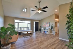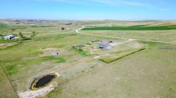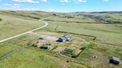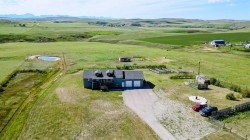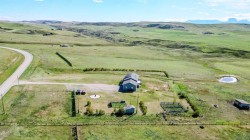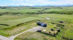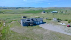Wow—welcome to your own private retreat! This 5-bedroom, 3.5-bathroom bungalow sits on 10.01 acres and is loaded with features that make it stand out! Step inside and you’ll be greeted with vaulted ceilings, an open-concept floor plan, and tons of natural light! The kitchen flows seamlessly into the living space, creating the perfect spot for family hangouts or hosting friends.Movie night anyone? The walk-out basement is home to an incredible theatre setup that makes you feel like you’ve got your very own cinema—grab the popcorn and settle in for the big screen experience without ever leaving home! Add in a spacious game room, and you’ll quickly see how much fun this house is built for!Outside, you’ll find plenty of space to stretch out and enjoy country living. With a brand new dog fence just installed, your four-legged friends can run and play safely while you relax on the back deck and soak in one of the best views in all of Southern Alberta! The property also has room for horses, hobby animals, or simply enjoying the elbow room that acreage life provides.The home is serviced by a spring-fed cistern, giving you reliable water for the acreage lifestyle. Pair that with in-floor heating, a large attached garage, and endless outdoor potential, and this property truly checks all the boxes!This isn’t just a house—it’s a lifestyle waiting for its next chapter! Don’t let it slip away!