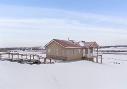 Exceptional 24.02-acre property with breathtaking 360° views of the countryside, sunrises, sunsets, and the Rocky Mountains. Fully fenced and gated, this former licensedcommercial operation features extensive concrete walkways, patios, and aprons. A year-round headwater spring feeds three connected ponds with agricultural water rights. Thehome offers a wrap-around deck, walkout lower level, hardwood floors, 3 bedrooms,multiple baths, a Vermont Castings wood-burning heater, spacious rec room, ample storage and radon mitigation. A well-designed fully PERMITTED COMMERCIAL COMPLEX (cost to build today $800k) includes a 2-storey COMMERCIAL CODE office/studio building, PLUS single-storey attachedwarehouse/storage area. These are connected via a reception/foyer to a HUGE MULTI PURPOSE WORKSHOP with 12’x12’ overhead door. All are extensively serviced with hydronic heating, heated concrete floors, A/C (select buildings), Vacu-Flo, security and intercom systems, hail-resistant roofing, and robust utilities. The well and 3,000-gallon cistern has softened and distilled water. There are multiple hydrants, a stock waterer, annually maintained septic system, grid-tied SOLAR system ($75k) with surplus power credits ($3,200 in 2025), and 22 kVAstandby diesel generator. Ideally located with quick access to Calgary, Okotoks and High River, also on a school busroute, with hayed fields and excellent potential for subdivision, secondary suite, or home-based business (County approval required).