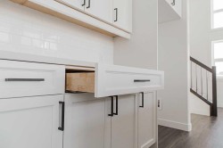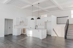 Introducing The Mackinley job #354, a highly sought-after modified bi-level built by Crosslink, now reimagined with a fresh, contemporary edge. This standout floor plan continues to impress with its signature architectural details and elevated finishes throughout. Step into the stunning great room, highlighted by an impressive 16 ft coffered ceiling, floor-to-ceiling windows, and a cozy gas fireplace. The open-concept kitchen is designed to impress, featuring upgraded cabinetry, quartz countertops, wood soft-close drawers, and undermount lighting, making it the perfect space for both everyday living and entertaining. On the main floor you can also find a full bathroom and 2 bedrooms. Upstairs, a spacious loft/office overlooks the main living area and leads to the luxurious primary suite. This retreat-style bedroom offers a spa-inspired five-piece ensuite with a soaker tub, dual vanities, a stand-up shower, and a massive walk-in closet. The 34' x 24' triple garage comes fully equipped, drywalled, plumbed for a heater, complete with hot/cold taps and a floor drain ready for all your storage and workspace needs. The basement is a blank canvas awaiting your vision or can be finished to the proposed layout for even more living space. This refreshed and always-popular floor plan is must-see. Contact your favorite agent to set up a private viewing! Photos are samples from a previous build and are subject to change.