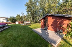 Original owners proudly offer this immaculate 1,346 sq ft, 3-bedroom, 2-bath home, perfectly located in the peaceful lakeside community of Ross Haven on Lac Ste. Anne. Just steps from lake access with a partial lake view, the property enjoys approx. 1/4 acre of serene setting with mature trees out front and a large park reserve at the back leading directly to the water. Inside, the home exudes pride of ownership with a spacious country kitchen, generous living room, and three comfortably sized bedrooms. Recent upgrades include newer flooring, windows, furnace, and hot water tank, plus central air conditioning for year-round comfort. Outdoors, you’ll find a double oversized, heated garage, RV parking, paved driveway, raised garden beds, and more—all ideal for both full-time living and weekend getaways. Only 50 minutes to Edmonton or St. Albert, this is a rare opportunity to enjoy lake life with city convenience close by.