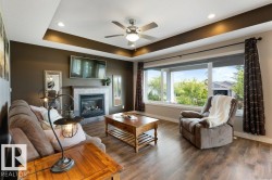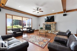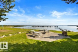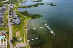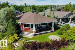 FORMER SHOWHOME - ORIGINAL OWNER! Spacious, 1,478 sq ft, 3 Bdrm, 2 Bath BUNGALOW situated BESIDE GREEN SPACE. Residence is fully Landscaped w/ 2 Covered Decks, SOUTH FACING YARD, Firepit area, Gas BBQ Line + apple trees & saskatoon bushes. Bonus: Pantry, Stainless Steel Appliances, Large KITCHEN ISLAND, GAS FIREPLACE, HOT WATER ON DEMAND, Central Vac & Laundry Room w/ Sink. Plenty of parking - o/s driveway + HEATED GARAGE (21'1" x 26'11"; 508 sq ft) - large enough to store a 17' Boat! Spend the summer at the Lake or enjoy RESORT STYLE LIVING YEAR-ROUND. GATED COMMUNITY is on MUNICIPAL WATER & SEWER and features Trails, Heated Outdoor Pool, Marina & Boat Launch, Clubhouse, Playground, Beachfront Park, Fitness Centre, Community Firepit & Seasonal Skating Rink. Walking distance to service station, groceries & dining. Numerous Golf courses nearby. Quick commute to Alberta Beach or Stony Plain. Only 52 minutes drive to Rogers Place / Downtown Edmonton. Pride of Ownership throughout - immaculate condition!