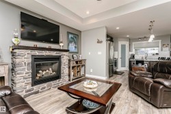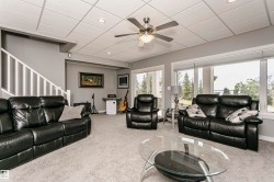 Fantastic 4 bedroom WALKOUT bungalow with THE BEST lake views!! New vinyl plank, granite counters, stainless appliances, gas stove, stone fireplace, covered deck and lower patio is just the start!! Huge Island slab in the awesome kitchen with wood cabinets opens to the living/dining room area with f/p and numerous south facing windows with patio doors that lead to the deck. The master suite takes full advantage of the lake views and features a 4 piece ensuite with glass shower. Another bedroom and 4 piece bath round out the main floor. In the fully finished walkout basement you'll find two more massive bedrooms, one with lake views of its own along with a 4 piece bath and a great family room. Garden doors from the family room lead out to the covered patio. The garage is a heated oversized double measuring 29 feet long on one side...wow! As an owner you can enjoy amenities like the private marina, swimming pool, fitness centre, clubhouse and beachfront park. New hwt and mw/hoodfan as well!
