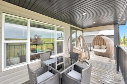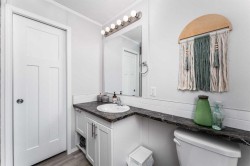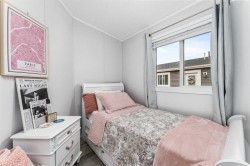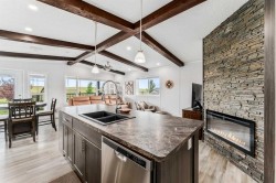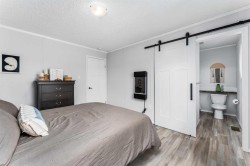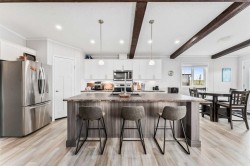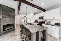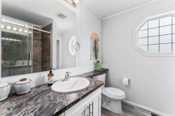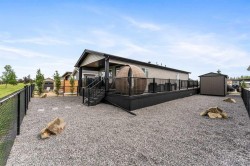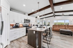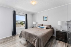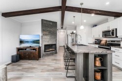 Welcome to Southview at Sandy Point, where upscale comfort and year-round lake living come together on the scenic southwest shores of Gull Lake. This modern and stylish 2-bedroom, 2-bathroom modular home was built in 2021 and offers 1,040 square feet of thoughtfully designed, open-concept living space that’s perfect for both relaxing and entertaining. Inside, you’ll find a bright and airy layout with vaulted beamed ceilings, a spacious kitchen featuring an island, breakfast bar, full pantry, and stainless steel appliances, along with a full-size laundry area for convenience. The living room is centered around a cozy fireplace, while large windows fill the space with natural light and showcase serene views of the surrounding landscape. The primary bedroom offers a quiet retreat with a generous walk-in closet and its own private ensuite, while the second bedroom and full 4-piece bathroom provide comfortable space for guests or family. Step outside to a large wraparound deck, where you can enjoy morning coffee, summer BBQs, and evenings around the firepit—all with no rear neighbours and a peaceful backdrop of the future golf course fairways. The fully fenced, zero-maintenance yard is beautifully landscaped and includes a storage shed, providing the perfect balance of privacy and outdoor living without the upkeep. Located in the gated, year-round Southview community at Sandy Point Resort, this property comes with access to one of Central Alberta’s most desirable lake destinations. Residents enjoy a wide array of resort-style amenities including a public sandy beach, marina, playgrounds, walking trails, picnic areas, RV and boat storage, and more. Whether you’re a boating enthusiast, a nature lover, or someone simply looking to unwind and live a more relaxed lifestyle, Southview has something for everyone. The community allows for year-round residency—not just seasonal use—making it ideal for full-time living, weekend escapes, or more. Located just minutes from Bentley, a short drive to Sylvan Lake and Red Deer, and under 2 hours from both Calgary and Edmonton, this location combines convenience with the calm and beauty of lake life. Amazing opportunity to own a piece of paradise—move-in ready, low maintenance, and fully equipped to help you enjoy lakeside living 365 days a year.