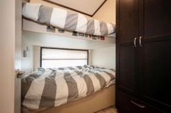 Experience affordable lake living with this oversized, beautifully landscaped lot located just steps from the marina, offering exceptional privacy and unobstructed lake views. Situated in the prestigious Sandy Point Resort on the southwest shores of Gull Lake, this property includes a Fairmont Country Manor Park Model designed for true four-season use, making it ideal as a recreational retreat, year-round residence, or revenue opportunity.The bright open-concept interior features vaulted ceilings, upgraded finishes, and large windows that create a warm and inviting atmosphere. The kitchen is equipped with rich dark cabinetry, full-size stainless steel appliances, and generous storage, flowing easily into the living area where a built-in electric fireplace adds comfort and ambiance in every season. The added convenience of a stacked in-unit washer and dryer enhances year-round functionality. With two bedrooms, this home comfortably sleeps six. The primary bedroom includes a built-in wardrobe, while the second bedroom features double bunk beds designed to accommodate four guests. A full four-piece bathroom completes the interior with residential-style comfort.Outside, the lot is fully fenced and landscaped, with a 16x16 deck for outdoor dining and relaxation, a dedicated fire pit area, and a 10’x14’ storage shed providing ample room for lake equipment, tools, or recreational gear. The spacious lot also allows flexibility for future development or expanded outdoor living space. Whether you are boating, golfing, walking the trails, or relaxing by the fire, this property offers the perfect blend of nature, recreation, and comfort. Immediate possession is available, allowing you to begin enjoying the lake lifestyle without delay.