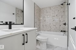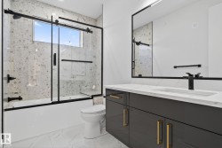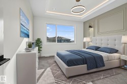 Welcome to your extraordinary future home in IRVINE CREEK North, Leduc county – a stunning blend of LUXURY, MODERN DESIGN, and INCOME POTENTIAL! This custom prairie-modern 2-storey offers almost 4000 SQ. FT. of finished space. The STRIKING EXTERIOR boasts woodgrain cladding, sleek panels, vinyl siding and stone accents. Inside, 9 ft CEILINGS and tall back windows create a bright, airy feel. The MAIN FLOOR features a SPICE KITCHEN, MUDROOM, DEN, BEDROOM WITH WALK-IN CLOSET, FULL BATH, and two “OPEN TO BELOW” SPACES. Upstairs, enjoy TWO MASTER SUITES with SPA-LIKE ENSUITES, TWO MORE BEDROOMS, BONUS ROOM, LAUNDRY, and a showstopping CATWALK. The FULLY FINISHED LEGAL 1-BED BASEMENT SUITE with BAR offers RENTAL OR MULTI-GENERATIONAL POTENTIAL. ENERGY-EFFICIENT, FIRE SPRINKLER-EQUIPPED, and complete with a CHARMING DROPPED DECK, this home is a rare gem. Embrace MODERN ELEGANCE, COMFORT, and CONVENIENCE in this exceptional Irvine Creek residence!