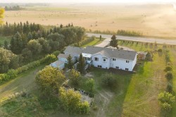 If you’ve ever thought, “We just need more space,” this custom Mason Martin acreage might be the answer. Set on 1.79 acres just two minutes outside Ponoka, this 9-bedroom (or 8 plus office) modified bi-level delivers 3,184 sq ft of living space — designed with family life, gatherings, and flexibility in mind.Step inside and you’ll immediately notice the craftsmanship. Vaulted ceilings and thoughtful design details create a sense of openness, while wide stairs and smart layout make every level feel connected. The heart of the home is its bright, open-concept main floor, anchored by a stylish kitchen with center island, perfect for cooking and conversation. Two gas fireplaces bring warmth and character — one for cozy evenings upstairs and another for the downstairs family retreat.This home boasts not just one but three family rooms, offering endless possibilities: a formal living space, a relaxed movie room, and a play or hobby area. Whether you’re hosting holidays or simply need room for everyone to unwind, each space is designed to feel inviting and versatile. The primary suite features a 4-piece ensuite, while two additional full baths and a half-bath ensure convenience for even the busiest households.The 3-season glass-covered deck extends your living space outdoors, perfect for morning coffee, family suppers, or watching prairie sunsets. The acreage itself adds to the lifestyle: a triple car garage, two sheds, plenty of parking, garden space, and established apple trees. It’s a property where you can live, grow, and gather. Recent updates — including fresh paint and updated LED lighting — add a modern touch to this timeless build.Close to schools, parks, and town conveniences, yet tucked away in a quiet setting, this acreage blends comfort, craftsmanship, and country living. For large families, or anyone who simply wants more room to breathe, this home is the definition of space and style.