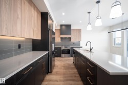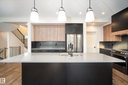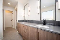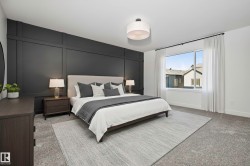 Over 2,500 sq. ft. of beautifully finished living space by Legacy Signature Homes! This stunning home impresses with its modern design, sophisticated finishes, and exceptional attention to detail. Enjoy quartz countertops throughout, a striking open-concept kitchen with rich two-tone cabinetry, a large island, and designer lighting. The main floor includes a spacious den, mudroom, and walkthrough pantry, while the inviting living room centres around a sleek electric fireplace. Upstairs, you’ll find a bright vaulted ceiling bonus room, convenient laundry, two generous bedrooms, and a full bathroom. The luxurious primary suite offers a walk-in closet and an incredible ensuite featuring a soaker tub, walk-in shower, dual sinks, and a private water closet. The oversized double garage provides ample space for parking and storage. A truly impressive home that perfectly combines style, function, and craftsmanship.*some photos virtually staged