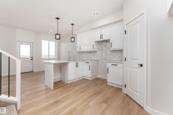 Experience modern living within this brand new 1587 sq ft duplex offering the perfect balance of style and comfort. The main floor boasts an open concept design with oversized windows that fill the home with natural light, a welcoming living room with fireplace, a sleek kitchen with abundant counter space, and a convenient 2pc bathroom. Upstairs you will find a versatile bonus room along with three spacious bedrooms including a primary retreat complete with a walk in closet and a 5pc ensuite, plus another full 4pc bathroom. The unfinished basement provides endless potential for future development while the double attached garage ensures convenience and storage. Step out onto your private deck and enjoy warm evenings in a vibrant community close to parks, trails, schools, and shopping. With brand new appliances, a separate entrance, and the pride of being the first to call it home, this property is ready to welcome you into the lifestyle you have been waiting for. Some photos are virtually staged.