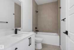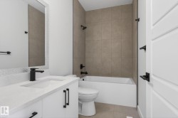 BRAND NEW Townhome with NO CONDO FEES. Open concept floor plan features a living room with electric fireplace complete with an accent wall. Upgraded ceiling height 2-toned kitchen cabinets with quartz countertops and soft-close drawers. A nook overlooking the backyard and a 2-piece powder room complete the main floor. Upstairs, the master bedroom features a 4-piece ensuite and Walk-In Closet. 2 additional good sized bedrooms, a bathroom and laundry room complete this level. SEPARATE SIDE ENTRANCE to the basement plus a DOUBLE DETACHED GARAGE. Modern Details include, MDF shelving throughout, luxury vinyl plank, upgraded backsplash and premium lighting package. This community is conveniently located just 10 minutes away from the City of Edmonton and has direct access to Highway 16A. Close to all amenities.