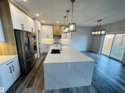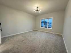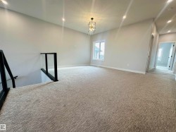 Experience refined living surrounded by nature in this custom-built 2,394 sq.ft, 28 pocket lot home. 4 bedrooms | 3 baths | bonus room | FACING A BEAUTIFUL POND & WALKING TRAILS, in the most desirable community of Tonewood, Spruce Grove. Featuring: 9 ft ceilings on main floor & basement / main floor bedroom and full bath / open-to-above living room with a striking feature wall and electric fireplace / chef's kitchen boasts quartz countertops, walk-in pantry, and full appliance package / 3 bedrooms upstairs including an oversized primary retreat with a spa-inspired 5-piece ensuite / vinyl flooring on the main floor / plush carpet upstairs / separate entrance to the basement / large windows that capture stunning pond views. Nestled in a vibrant neighborhood close to schools, parks, shopping, and all amenities, this pond-facing dream home truly has it all.