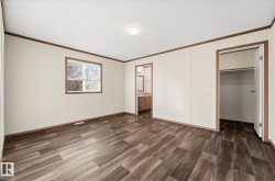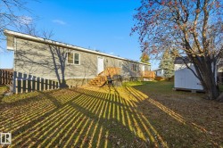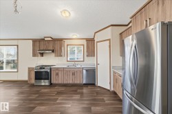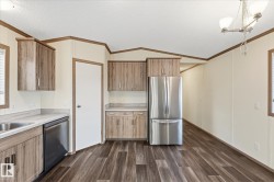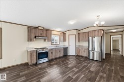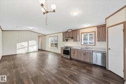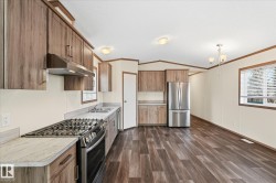 Welcome to Mobile City Estates in Spruce Grove! This 2021-built 3-bed, 2-bath manufactured home offers over 1,000 sq. ft. of bright, open living space and has had only one owner. The modern kitchen features a gas stove and plenty of cabinetry, opening to a spacious living area perfect for relaxing or entertaining. The primary suite includes a full ensuite, with two additional bedrooms offering great flexibility. Enjoy a huge fully fenced yard—ideal for pets, kids, or gardening. Just a 2-minute walk to Westland Market Mall, you’re close to shopping, groceries, dining, and public transit. A perfect blend of comfort, convenience, and value in a desirable community!