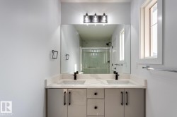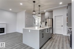 Stunning 1607 sq ft 2 storey townhome with a double attached garage located in the highly sought after community of Copperhaven. This 3 bedroom 2.5 bath home features luxury vinyl plank spanning the entire main floor along with a open concept. Chefs kitchen features upgraded cabinetry complimented by quartz countertops, tiled backsplash, designer pendant lighting, and a full set of stainless steel appliances. Living room features a electric fireplace. Upper floor features a spacious bonus room, 3 bedrooms, 2 bathrooms and the laundry room. The spacious master features a spa like 4 piece ensuite bath with his and her sinks along with a tiled shower. Other features include: Double attached garage, 9 ft ceilings, walk through pantry, separate entrance for future basement suite, designer plumbing, spacious yard, and so much more. Located close to schools, and all the amenities including shopping, transportation, and dining.