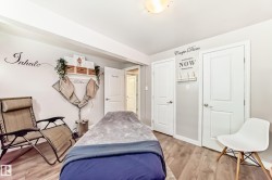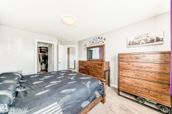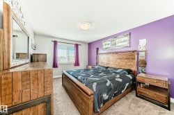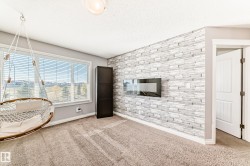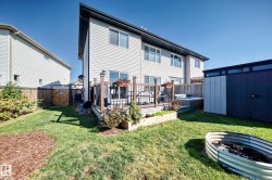 Discover luxurious living in the heart of Harvest Ridge, Spruce Grove. This stunning FULLY FINISHED half duplex merges contemporary design with elevated style across its spacious layout. Nestled on a reverse pie lot, this home seamlessly integrates indoor and outdoor relaxation. This home offers 3+2 beds, 4 baths, airy bonus room upstairs and a fully finished bsmt. The primary bedroom is true paradise and overlooks the backyard oasis; the ensuite has a newly installed modern tiled shower and walk in closet. The home has been well cared for and updated over the years with central AC, bonus room accent wall with nice views and mudroom barn doors. The beautifully finished bsmt has 1 bedroom and one other flex space + half bath. Step outside to your own private oasis, hot tub, garden beds, composite deck, firepit and backing onto a park area. Laundry is on the upper floor. NEW washer, dryer and dishwasher. Prime location in Harvest Ridge and nestled in a cul-de-sac where tranquil vibes are on the daily.
