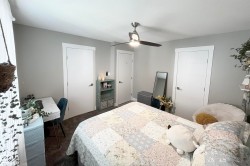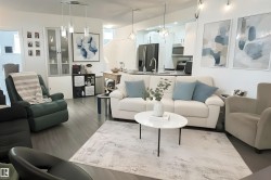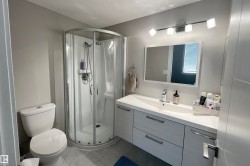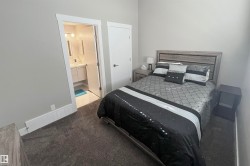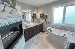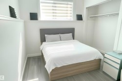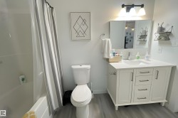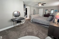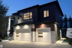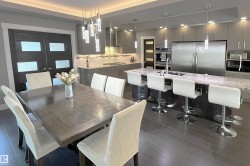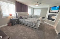 Modern 2,756 sq. ft. two-storey with 1,000 sq. ft. legal basement suite. Main level offers 9 ft. and 12 ft. ceilings, open dining area, and office with storage that could serve as a 7th bedroom. The kitchen includes 7 appliances: fridge, freezer, 2 ovens, gas range, microwave, dishwasher, plus a large walk-through pantry. Upstairs, the primary suite features a fireplace, 4-piece ensuite, walk-in closet with direct laundry access. A second bedroom includes a 3-piece ensuite and walk-in closet, while two additional bedrooms also have walk-in closets. Highlights include high-efficiency furnaces, A/C, HRV, large covered deck, and oversized heated triple garage with 12 ft. ceilings. The legal basement suite has 2 bedrooms, private entrance, large windows, full kitchen with appliances, in-suite laundry, and separate furnace. Exterior features year-round RV parking pad, driveway for up to 7 vehicles, and powered garden shed.