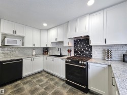 Looking for everything on your wish list? This lovely 2 story townhome condo in Gentry Lane has it all with a total of 4 beds, 3 full baths, hardwood floors, wood burning fireplace, a gorgeous new kitchen complete with new Cafe appliances, fenced yard with deck + gas hookup, heated double attached garage, A/C and fresh paint! The main floor provides a bright and cozy living space, a functional kitchen with gas stovetop and plenty of storage, spacious dining area, main floor bedroom, full bath and laundry leading to the garage. Upstairs you will find a large primary bedroom with 3pc ensuite plus 2 more generously sized bedrooms and a 4pc bath. The basement is awaiting your future plans or just use it for extra storage! Nestled just steps away from shopping, trails and transit, this beautiful home is the perfect place to plant new memories in The Gardens!