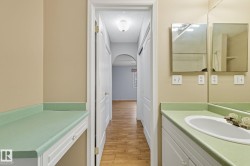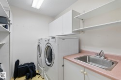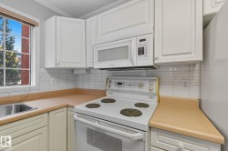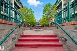 Location, location, location! This original-owner condo is ideally situated in beautiful Downtown St. Albert, offering unmatched walkability, convenience, and comfort. Inside, you’ll find two generously sized bedrooms and two full bathrooms, including a spacious primary suite with its own private patio access. The second bedroom features a built-in Murphy bed, making it an excellent space for guests or a flexible home office. An in-suite laundry room with sink adds extra practicality. Enjoy the expansive east-facing patio overlooking the peaceful courtyard—perfect for morning coffee, relaxing afternoons, or entertaining friends. As a bright corner unit, the home boasts abundant natural light throughout its open-concept living space. The kitchen flows effortlessly into the large living area, complete with a cozy corner gas fireplace and direct access to the patio. Additional amenities include underground parking and a dedicated storage unit. This is comfort, convenience, and lifestyle all in one exception