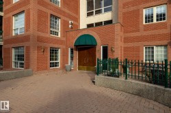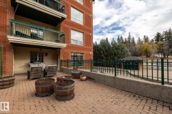 Welcome to Churchill House ! A Beautifully Maintained condo in the Heart of Downtown St. Albert! This spacious home offers the perfect blend of comfort,& location. The west-facing patio is truly something special- large, overlooking the peaceful courtyard, the perfect place to relax, entertain, & enjoy beautiful evenings & breathtaking sunsets. Bright open-concept layout with wall to wall windows and natural light. The kitchen opens seamlessly to a large living area featuring a cozy corner gas fireplace and direct access to your patio. This home offers 2 bedrooms & 2 bathrooms including a primary suite with a 3-piece ensuite with private patio access. The second bedroom includes a Murphy bed, making it ideal for guests or a versatile office space. Laundry with sink ! Underground parking with a storage unit! Churchill House provides a guest suite for visitors, a second floor lounge area & secure bike room in parkade. Minutes from the farmers market, shops, & dining! Truly a wonderful place to call home!!