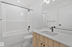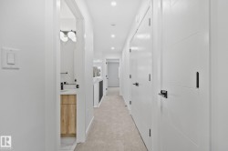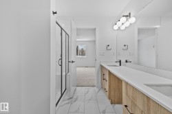 The Baci model welcomes you in with a spacious foyer and mudroom, leading into an open-concept kitchen, nook, and living room with soaring ceilings and a striking open-to-above design. A built-in pantry and central island enhance the kitchens functionality, perfect for everyday living and entertaining. Upstairs features two secondary bedrooms, a laundry closet with sink, and a serene primary suite with double sinks, tiled shower, and a walk-in closet. The home also includes a legal basement suite with one bedroom, a living room, 3 piece bathroom, and full kitchen.