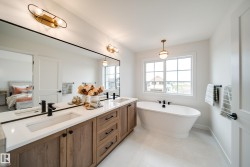 Introducing the "Carbon" by award winning builder Justin Gray Homes, in the beautifully curated French Country colour palette. Nestled on a 30’ pocket lot in St. Albert’s 2025 Best New Community, near future schools & rec center & nearly 2600 sqft, this home was thoughtfully created to fit the way you live, with space to grow and gather. A bright, open main floor welcomes you w/a sunlit great rm w/cozy GAS FIREPLACE, den w/frosted glass doors, & a stylish 1/2 bath. Through JG'S signature ARCHED pantry, step into the chef inspired kitchen w/custom DOVE-TAILED cabinetry, a spacious island for entertaining, & a full KitchenAid APPLIANCE PACKAGE INCLUDED. Upstairs find 4 generous bedrms, BONUS rm, & laundry. The main bath includes DUAL SINKS & a clever POCKET DOOR separating the vanity and the bath/toilet, making busy mornings a breeze. The serene primary retreat has a large WIC & a luxurious 5PC SPA LIKE ensuite w/soaker tub & water closet. Complete w/OVERSIZED dbl car garage w/drain. Call this home today!