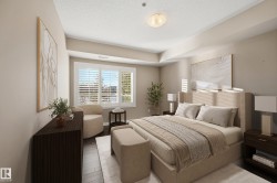 VIEW-TI-FUL LOCATION, SIZE and LAYOUT all overlooking the Sturgeon River! Come feel the ZEN as you relax and listen to the birds sing and watch the sunsets over the River from your huge balcony. You will love the expansive living space offering a generous Living/Dining area (Gas F/P), additional Flex room - perfect for a Home Office or Craft Rm as well a Laundry Rm with additional storage cabinets. The Kitchen offers Maple cabinets, Quartz Counters, S/S Appliances and a lovely Breakfast Bar. Your Master Suite is huge, accommodates King Sized furniture, has a walk through closet with floor to ceiling custom shelving and ensuite with double shower (w/seat). The 2nd Bdrm is large, has a wall to wall closet and there's an additional 4pce bath. Every window has a VIEW of Mother Nature. Included; 2 wide Side x Side U/G Stalls, Custom Shutters, big Storage unit, U/G Visitor Parking, Exercise Rm & Library/Games Rm with a view. You are steps to Walking Trails, Farmers Market, Restaurants & Downtown St. Albert. WOW