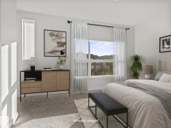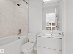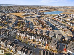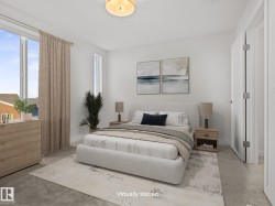 Welcome to this nearly NEW townhome in the beautiful Jensen Lakes community of St. Albert! Enjoy MAINTENANCE-FREE living just steps from the BEACH, parks, trails, dining, and theatre. This STYLISH home offers an open-concept layout with 2 bedrooms and 2.5 modern bathrooms. NATURAL LIGHT pours in through large windows, creating a warm, welcoming space for entertaining or relaxing. The SLEEK kitchen features white cabinetry, quartz countertops with a breakfast bar, and stainless-steel appliances. It flows seamlessly into the SPACIOUS living and dining areas and opens to a CHARMING upper deck. Upstairs, you'll find 2 PRIMARY SUITES—each with its own ensuite and closet—plus a convenient laundry area. The ground level includes a MASSIVE tandem garage, utility space, and access to a fenced yard and green space. Whether you're starting out or downsizing, this home is move-in ready, low maintenance, and ideally located—it truly rates a perfect 10/10!