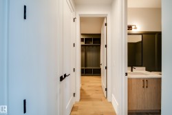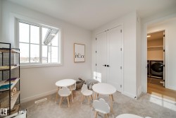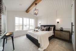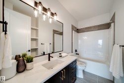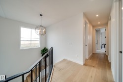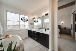 Welcome to The Vantablack by AWARD WINNING builder Justin Gray Homes, set on a 30’ pocket cul-de-sac lot in Cherot. An UPGRADED masterpiece w/over 2500 sqft blends luxury & functionality in a Modern Farmhouse colour palette by CM Interiors, showcasing sleek black cabinetry & timeless Carrera QUARTZ counters. An open to below great rm fills the home w/natural light, complemented by 9’ ceilings, 8’ doors, HARDWOOD floors, & a cozy GAS fireplace. An oversized dbl garage leads to a mudrm w/custom MDF built-ins, connecting to a walkthru pantry w/JG's signature archways,to a chef inspired kitchen w/huge island, premium DOVETAIL cabinetry, & a full KitchenAid APPLIANCE PACKAGE INCLUDED. A bright den & 1/2 bath complete the main. Upstairs find 3 spacious bdrms, incl. a dreamy primary retreat w/VAULTED ceilings, panelled feat. wall, spa-inspired 5 pc ensuite & massive WIC w/DIRECT access to the laundry rm. Steps to parks, near future schools and rec center. *Photos of similar model-final layout/finishes may vary.