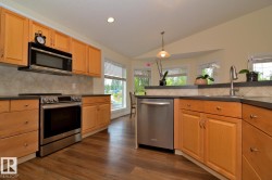 The marvelous bilevel in Lacombe Park Place across from Lafleur Park is your dream come through. Large and fully finished home with triple heated garage and gorgeous backyard on the corner lot adorned with shrubs and trees. Plenty of windows, meticulously maintained home with 4 bedrooms and three full bathrooms has multiple upgrades done this year. The beautiful kitchen has stainless steel appliances, walk-in pantry and breakfast nook leading to the new deck. Sunny formal dining room and large living room complete the main floor together with two bedrooms and full bathroom. Master suite above the garage has an ensuite with shower, jacuzzi and walk-in closet. Fully finished basement with sunny bedroom, recreation room with wet bar, family room with gas fireplace, new carpet, full bathroom with steam shower and utility/laundry room shines in flood of natural light. The backyard utilizes a corner lot setting and has plenty of sun throughout the day. New deck is complimented by a nice paved patio.