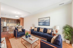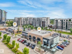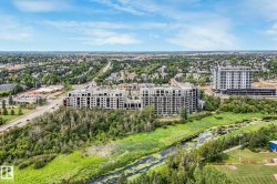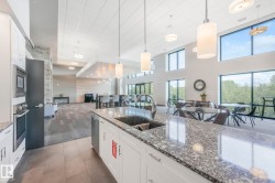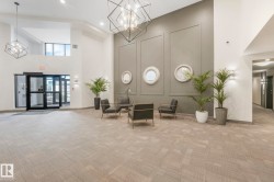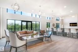 ELEGANT! 10 foot ceilings, oversized windows w/custom zebra shades, oversize interior & entry door plus upgraded finishes! ESPRESSO kitchen has quartz countertops, MIELE appliances, ultra quiet dishwasher, gorgeous metallic gold backsplash, touchless faucet, refrigerator w/ ice/water & custom pendant lighting. Main living space has beautiful engineered hardwood flooring. Bathroom w/ heated tile flooring, quartz countertops. Living room w/ fireplace & floor to ceiling tile surround, 65 inch SONY TV & Sonos sound bar. Balcony has all the conveniences for condo living - gas for BBQ & water tap. Concrete/steel bldg & heated underground prkg- full storage cage incl w/steel rack. A/C. Deck has water and gas outlet. Amenities; social rm, exercise rm, roof top terrace & guest suite!! Shop at Italian Bakery’s Mercato or walk to a restaurant of your choice. Extensive river valley trails right behind the building!! GORGEOUS VIEWS facing northwest for perfect sunsets!
