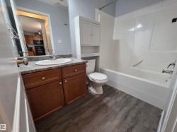 Completely renovated 2-bedroom, 2-bathroom main-floor condo backing onto a peaceful forest setting. This beautiful unit features fresh paint and modern vinyl plank flooring throughout. The chef-inspired kitchen is equipped with appliances and opens to a bright, inviting living room with access to a covered deck—perfect for relaxing and enjoying the view. The spacious primary bedroom offers a true retreat with spacious closets and a 4-piece ensuite. Additional highlights include in-suite laundry with a new front-load washer and dryer, as well as secured underground heated parking. The building also offers excellent amenities, including a bookable banquet/party room for larger gatherings and a secure mail area. A beautifully updated home in a quiet, scenic location.