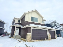 5 Things to Love About This Alquinn Home: 1) Brand New & Perfectly Positioned: This stunning new-build, 2 storey backs onto a park and features a triple attached garage, offering space, privacy, and a family-friendly setting. 2) Open Concept Main Floor: The main living area is designed for connection, with a bright open concept layout that blends the living room, dining, and kitchen, anchored by a cozy electric fireplace. 3) Kitchen That Works as Hard as You Do: Enjoy a wrap-around breakfast bar, ideal for entertaining or casual meals, plus a walk-through pantry leading to the mudroom with direct access to the garage. 4) Thoughtful Main Floor Features: A convenient 2pc bath and functional mudroom make everyday living easy and organized. 5) Well-Planned Upper Level: Upstairs offers a spacious bonus room, laundry, 2 bedrooms sharing a 5pc bath with dual sinks, and a primary retreat complete with a 5pc ensuite featuring dual sinks, stand-up shower, soaker tub, and walk-in closet.