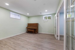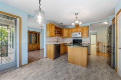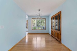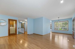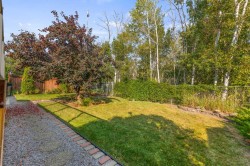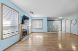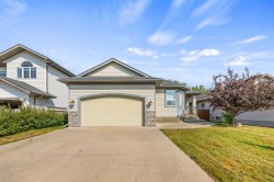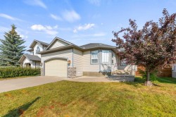 Nestled in the serene community of Aspen Creek, this beautifully maintained bungalow enjoys an exceptional setting—backing onto mature trees, a park, and scenic walking paths. From the inviting covered front porch, you step into a spacious living room centred around a cozy fireplace, perfect for relaxing evenings. A formal dining room provides an elegant backdrop for gatherings, while the bright eat-in kitchen is a true highlight with extensive cabinetry, a central island, a convenient pantry, and a bay-window dining nook that floods the space with natural light. The main floor hosts three comfortable bedrooms, including a primary retreat complete with a full ensuite and generous walk-in closet. Downstairs, the fully finished basement offers impressive versatility, featuring a large bedroom, two expansive recreation rooms, an office area, and three storage rooms—ideal for hobbies, guests, or extended family.Recent updates bring peace of mind with a new roof (2017) and a brand-new hot water tank. Added conveniences include main floor laundry, central air conditioning, an attached double garage, and a raised back deck that overlooks your own private forested oasis. The landscaped yard enhances the sense of seclusion and tranquility. Modern upgrades throughout elevate everyday living: the home is wired for audio, features custom smartphone-controlled LED lighting on the basement stairway, and includes a radon reduction system, water scale reduction system, water filtration, and a PCO central air purification system. With schools and shopping nearby, and set in one of Strathmore’s most desirable locations, this home offers the perfect blend of comfort, convenience, and serenity.