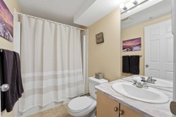 Perfectly positioned in one of Sylvan Lake’s desirable communities, this beautifully updated 2 bedroom, 2 bathroom condo offers comfort, convenience, and stunning views— all in one exceptional package.Recent renovations elevate the space, and include new kitchen cupboards, modern countertops, a new fridge, fresh carpet, and upgraded vinyl plank flooring. The thoughtful updates create a clean, contemporary feel while maintaining a warm and inviting atmosphere. The functional, open-concept layout offers a spacious primary bedroom with its own ensuite, a well-sized second bedroom, second bathroom, and a bright open-concept living area ideal for relaxing or entertaining.Enjoy breathtaking mountain views and picturesque sunsets right from your living room window and enjoy morning coffee on your West facing balcony.Additional highlights include a heated, underground parking stall (titled), providing comfort and security year-round. Condo fees offer outstanding value and include professional management, heat, water, sewer, garbage, snow removal, and landscaping—making for truly low-maintenance living. Visitor parking is also conveniently available for guests.Whether you’re a first-time buyer, downsizer, or investor, this move-in-ready condo presents an incredible opportunity to enjoy easy living in the vibrant community of Sylvan Lake. This building is a prime location with easy commute to Highway 2 and just over a 15 minute drive to Red Deer.Don’t miss your chance to make this beautifully updated condo yours!