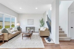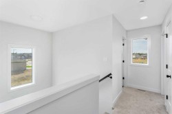 Welcome to 115 Hampton – a spacious and stylish two-storey home offering 1,525 sq ft of thoughtfully designed living space! This 3-bedroom, 2.5-bathroom home is perfect for families, professionals, or anyone looking for a comfortable and functional layout in a great neighborhood. Step inside to an open-concept main floor that features durable vinyl plank flooring, large windows, and a bright, welcoming atmosphere. The kitchen is complete with a large island, plenty of cabinetry, and flows effortlessly into the dining and living areas ideal for entertaining or family nights in. Upstairs, you'll find three generously sized bedrooms, including a roomy primary with a walk-in closet and a private 4-piece bathroom. The upper-level laundry adds convenience, while the basement offers potential for future development. Located in a family-friendly community with parks, schools, and shopping nearby, 115 Hampton is a phenomenal place to call home. Photos are REPRESENTATIVE.