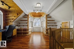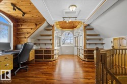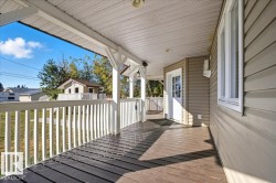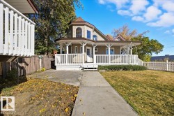 Charming 2-Storey Character Home! Step into timeless charm w/ this unique & beautifully maintained home, featuring a welcoming enclosed front porch & spacious back veranda, perfect for relaxing. Inside, you will fall in love w/ the custom kitchen (Wood Art) boasting solid oak cabinetry & mosaic tile flooring— perfect for the home chef. The formal dining room shines w/hardwood floors & a vintage chandelier, while the cozy living room includes a den/office space for added flexibility. Upstairs, discover a loft-style layout w/ 2 unique bedrooms including a spacious primary suite w/ built-in cabinetry, custom solid wood bed, 4-pc ensuite, w/i closet & private balcony. The 2nd room is bright & unique w/ octagonal ceiling & 2nd staircase to the main floor. The partially finished basement offers a workshop, laundry, 3-pc bath & loads of storage. Recent updates include a newer furnace & tankless hot water system. The landscaped, partially fenced yard offers mature trees for privacy, space for parking, and a playh