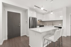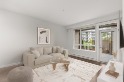PRIVATE SECONDARY ENTRANCE WITH DIRECT ACCESS TO LARGE GREENSPACE. This 771 sq ft, 2 bedroom ground-floor unit at Elmstone offers a rare feature: a secondary private entrance (perfect for pet owners) and a patio with views of the central green space. The home includes split bedrooms for added privacy, high ceilings, and a spacious kitchen island that flows into the main living area—perfect for entertaining or relaxing in style. Don’t miss this unique opportunity in a prime location!