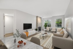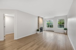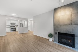 RENOVATIONS DONE RIGHT!! This centrally located, large 2 bed, 2 full bath unit has been updated from top to bottom with tasteful finishes. New Appliances, flooring, paint, FULLY renovated bathrooms, walk in closet organizer, lighting, blinds, fireplace and kitchen including quartz countertop, tile backsplash and undermount sink. All that's left to do is move in - pour yourself a glass of wine or brew your best coffee and unwind in front of the new fireplace or step out onto your patio overlooking private gardens. FINE, you'll have to unpack first! There is no smoke........just one mirror here in the impressively large primary bedroom walk in closet. Don't take my word for it though, come look for your self! Visit one of our open houses or call your Realtor for a private showing.