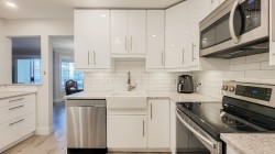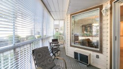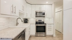 This beautifully renovated ground floor unit in a desirable 55+ community offers over 1,180 sq.ft. of stylish, move-in ready living space. Enjoy the comfort of 2 bedrooms and 1.5 bathrooms, plus an enclosed sun deck/solarium—perfect for year-round enjoyment. Renovations include new laminate flooring, updated blinds (including on the sun deck), paint, new doors and mouldings, modern kitchen cabinets, quartz countertops, stainless steel appliances, and fully updated bathrooms, built in A/C. A large, separate storage locker adds convenience, making this home ideal for downsizing. Complex amenities include a recreation room, guest suite, and workshop. Don’t miss out—book your private showing today!